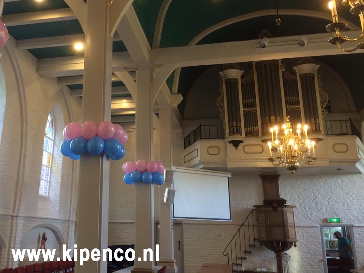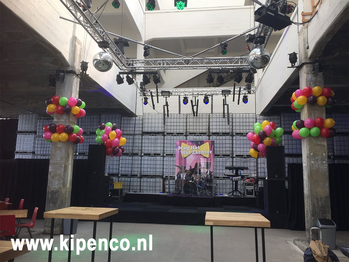 Ronde en vierkante pilaren kunnen "bekleed" worden met trossen van ballonnen.